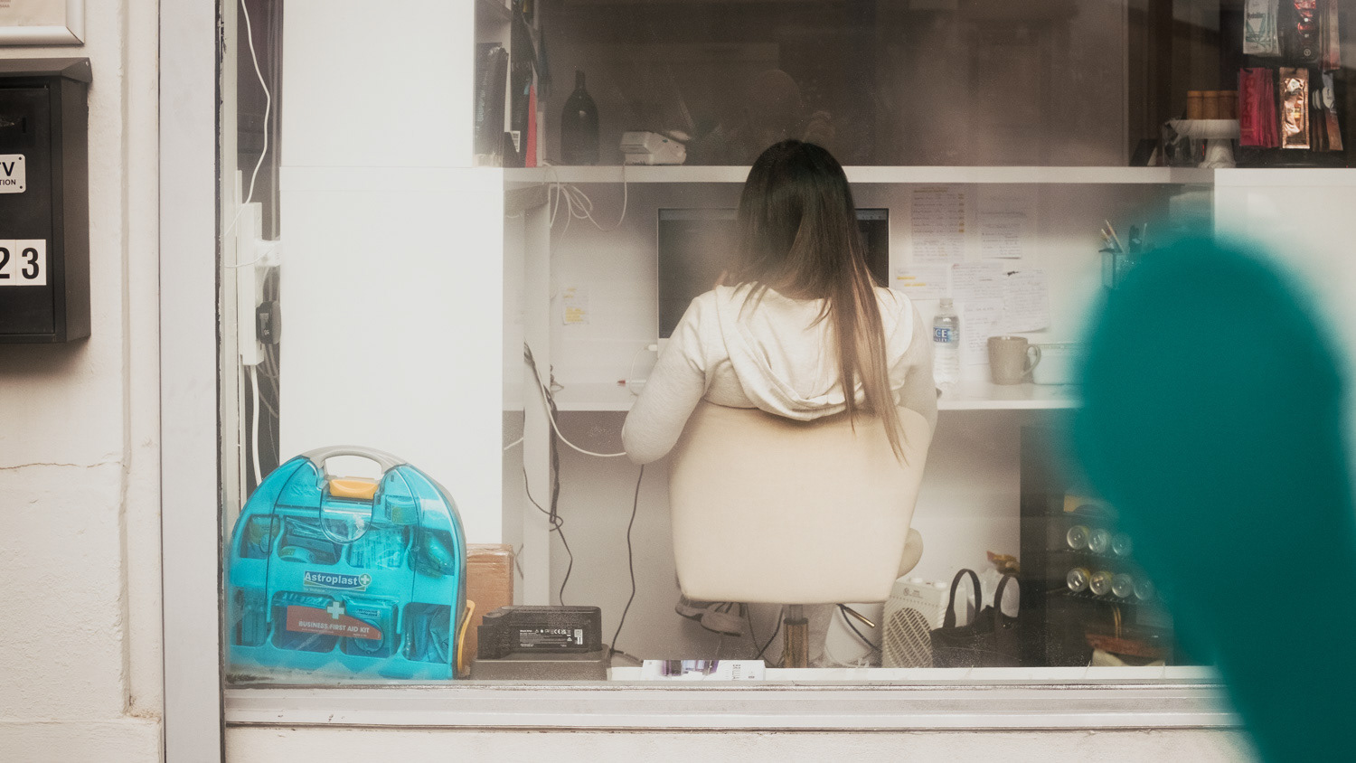 I was drawn to the blue graffiti 'splodge' on the glass of a bus shelter and while working the scene I noticed the object in the corner of the business window which is similar in colour.. so a composition was set about resulting in this photograph, cropped to my preferred 16x9 aspect ratio with little in the way of post processing.